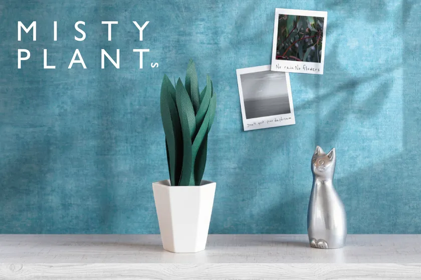 「ミスティプランツ サンスベリア」は、観葉植物をモチーフにした加湿フィルターと瀬戸焼のオリジナル容器をセットにして、インテリア性を高めています。