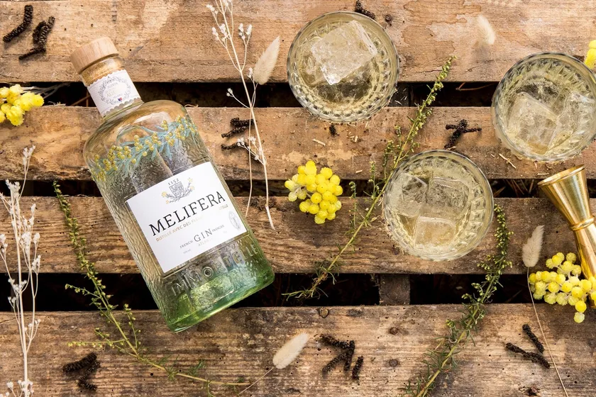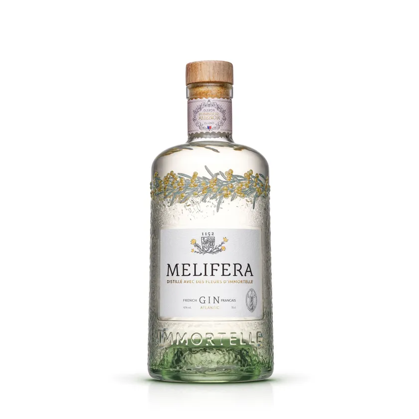 手摘みのイモーテルを使った初めてのオーガニックジンである「メリフェラ」は、芳醇で比類ない香りを持つプレミアムジンです。蒸留は伝統的な技術と革新的なアイデアを組み合わせるオーガニック素材の蒸留所であるシャラント=マリティーム県のSVE蒸留所で行われています。「メリフェラ」は、私たちを魅惑的なアロマの旅へと誘います。