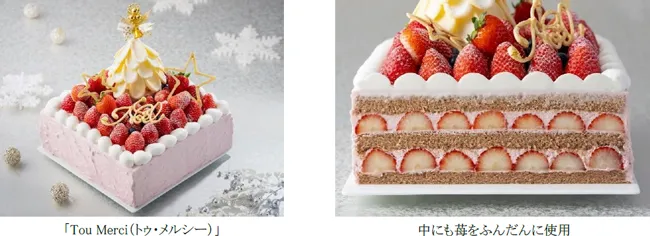 「ノエルブラン」・「ノエルショコラローズ」に加え、ホテル開業20周年を記念して、中にも苺がぎっしり詰まった、和三盆がまろやかに甘さをひき立てるプレミアムクリスマスケーキ「Tou Merci(トゥ・メルシー)」を10個限定で販売いたします。