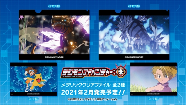 「デジモンアドベンチャー:」から、新しく、可愛いデフォルメ イラストを使用したデザインの裏面がミラー仕様のキーホルダーや劇中のシーンを使用したメタリッククリアファイルなどの5アイテムが2月15日から発売開始となります!!