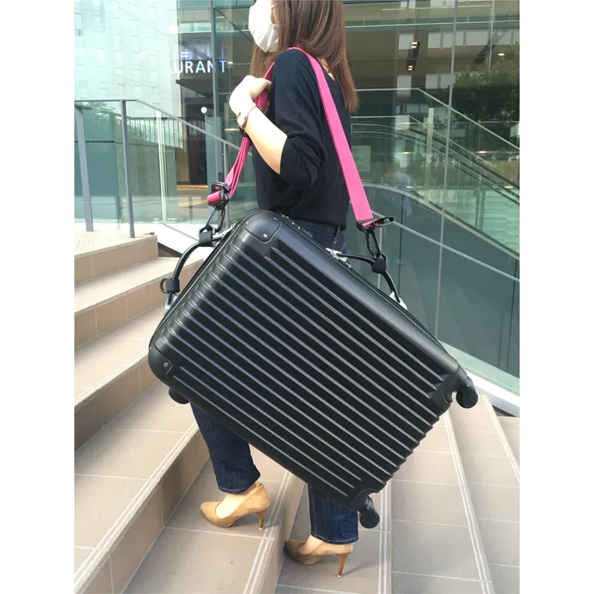 移動時は開口防止のスーツケースベルト、旅先ではスーツケースの肩掛けベルトに早変わり。階段も楽々。さらにスーツケースと人・テーブル・イスと繋げば簡易的な盗難防止ベルトにも。(男性トイレでも心強い)さらにさらに付属品を用いれば、コートや紙袋をスーツケースに装着でき、旅がより快適に。