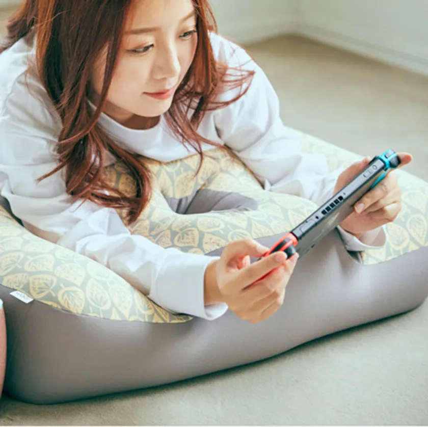 ゲームやスマホでの動画観賞のスタイル(姿勢)は「仰向け」「うつ伏せ」「横向き」「座って」と人さまざま。長時間になればなるほど、コロコロと姿勢を変えたりもします。背中に置いても支えてくれる。ももの上でも腕が楽。横向きでも耳が痛くない。どんなスタイルでも快適に“おうち時間”を過ごすことができます。