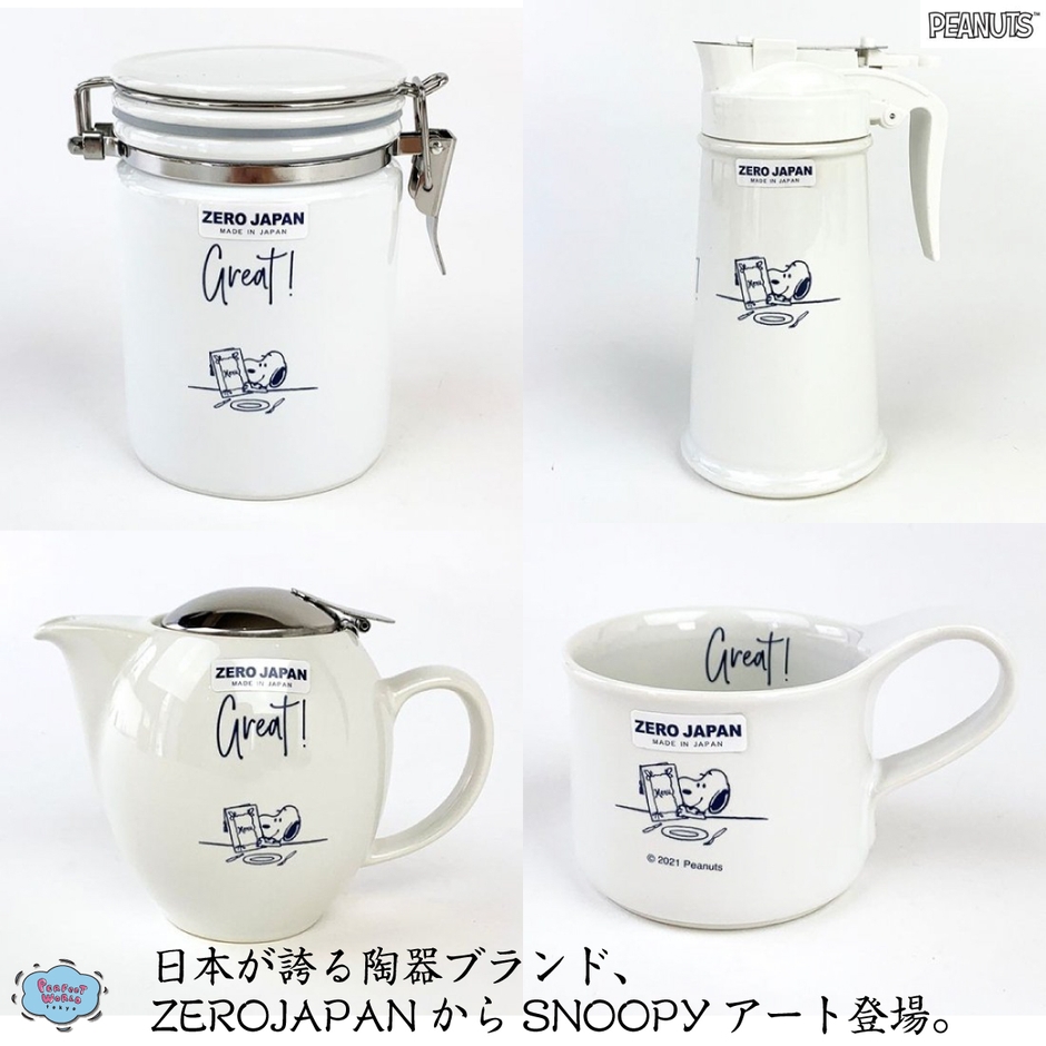 肌が澄んだ日本製陶器ブランド、世界中で評価されているZEROJAPANのスヌーピーアートが登場。マグカップとポットは使えば使うほどその形の理由がわかります。
