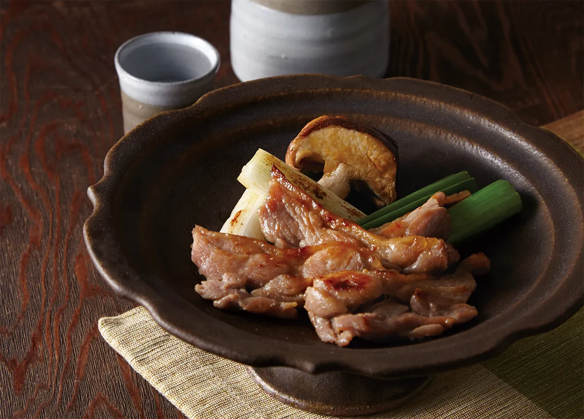 滋賀県長浜の富田酒造の酒「七本槍」の酒粕をベースにした特製の粕に、合鴨モモ肉を漬け込み、作り上げた一品です。