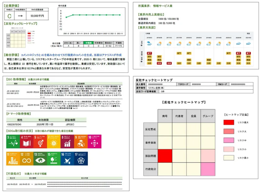 「リスモンAI与信管理PDF」には、リスモンが独自で収集した以下の情報を掲載いたします。