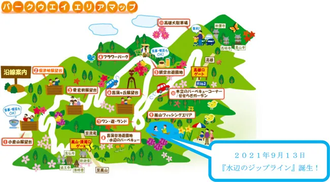 ※『水辺のジップライン』は嵐山‐高雄パークウエイ内のため、別途通行料金がかかります。