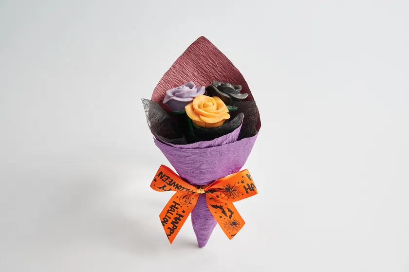 チョコレートでできたバラのブーケ。12種類のフレーバーを組み合わせたブーケは、イベントを盛り上げるアイテムや特別な日のプレゼントとして人気です。