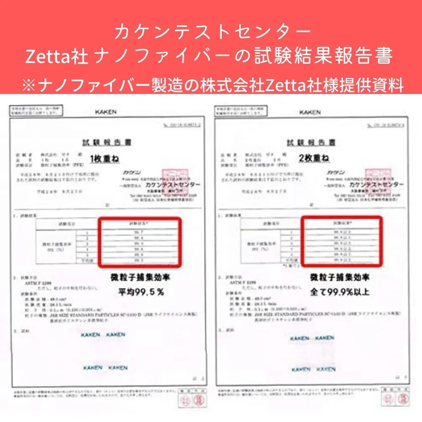 カケンテストセンター Zetta社 ナノファイバーの試験報告書