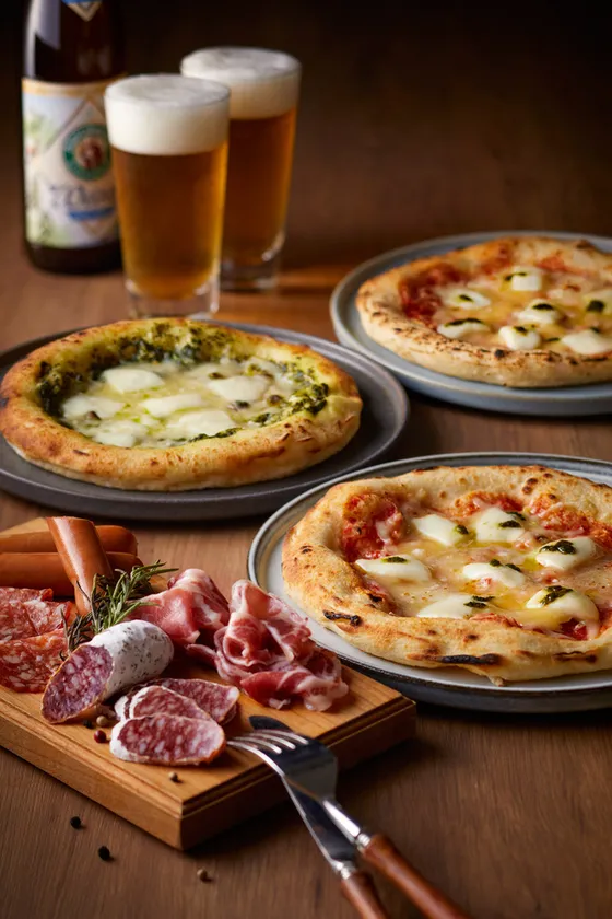 生地に使用する小麦は南イタリア・ナポリにある老舗製粉会社カプート社が製造。人工的な酵素や添加物を加えず、時間をかけてゆっくりとすりつぶす伝統的な手法を用いて丁寧に製粉されています。この小麦を使い30時間以上発酵させた生地を一枚一枚手伸ばしし、石窯で丁寧に焼き上げています。チーズはヨーロッパ各地から取り寄せたナチュラルチーズをピザの種類に合わせてブレンド。トマトソースには、南イタリア・プーリア州で採れた完熟ロングトマトを使用しています。