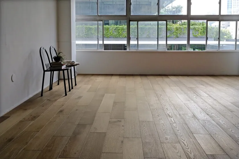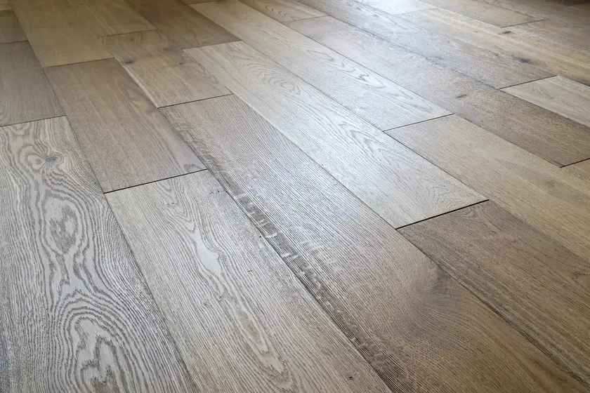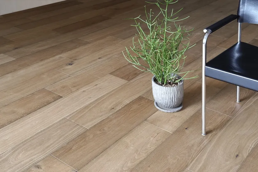 燻蒸という技法でつくり出した、時を経て色褪せたような表情が魅力のフローリング