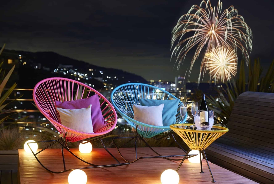 熱海の絶景と温泉に浸るリゾートホテル「星野リゾート リゾナーレ熱海」では、2022年7月29日~12月18日の熱海海上花火大会開催日に、視界いっぱいに広がる花火を二人きりの特等席で堪能「あたみ花火旅」を販売します。本プランで宿泊する客室「テラスリビングスイート」のテラスで一番花火が見やすい位置に、特等席を設置しました。花火が開いた様子をイメージしたイスにゆったりと腰掛けて、視界いっぱいに広がる花火を堪能できます。客室では、華やかな料理で花火玉を表現した「花火玉オードブル」を味わい、花火が打ち上がるまでのひとときをゆっくりと満喫できます。花火鑑賞の余韻に浸るオリジナル線香花火まで揃った、大切な人と特別な時間を過ごすことができる宿泊プランです。