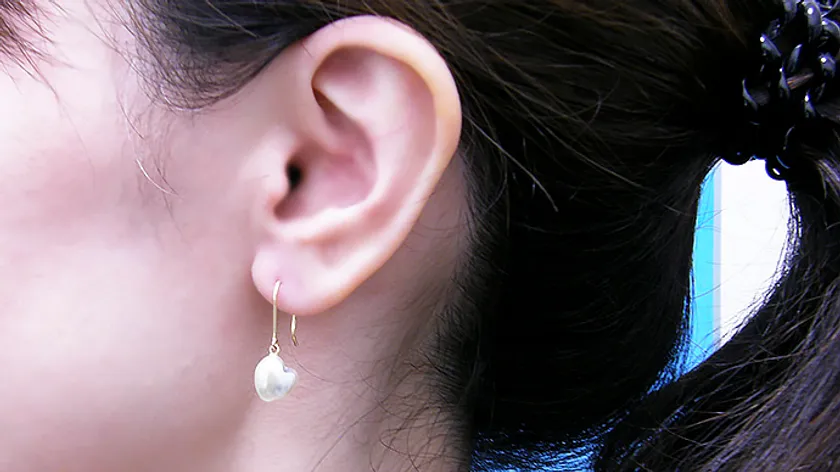 釣り針ピアスの装着写真です