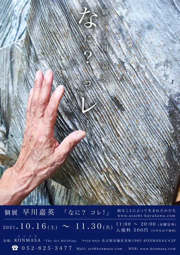重要伝統的建造物群保存地区に指定されている名古屋市有松にある、アートビル「KONMASA」にて、嵐絞りの藍染作家、早川嘉英の個展が開催されます。