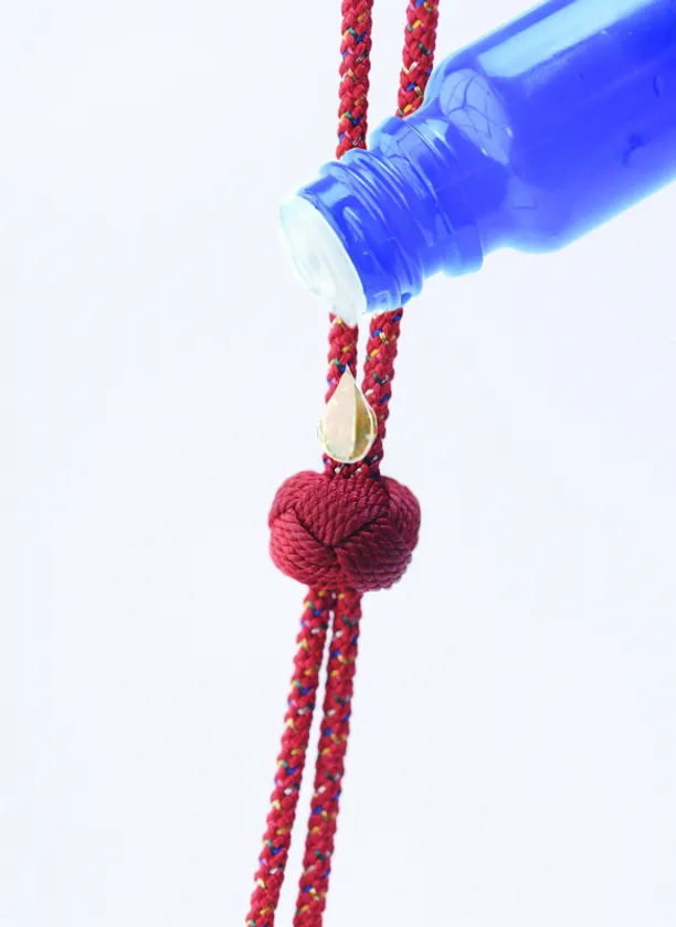 そのまま首にかけられる。珠の位置を変えることで香りの強さを調整できる