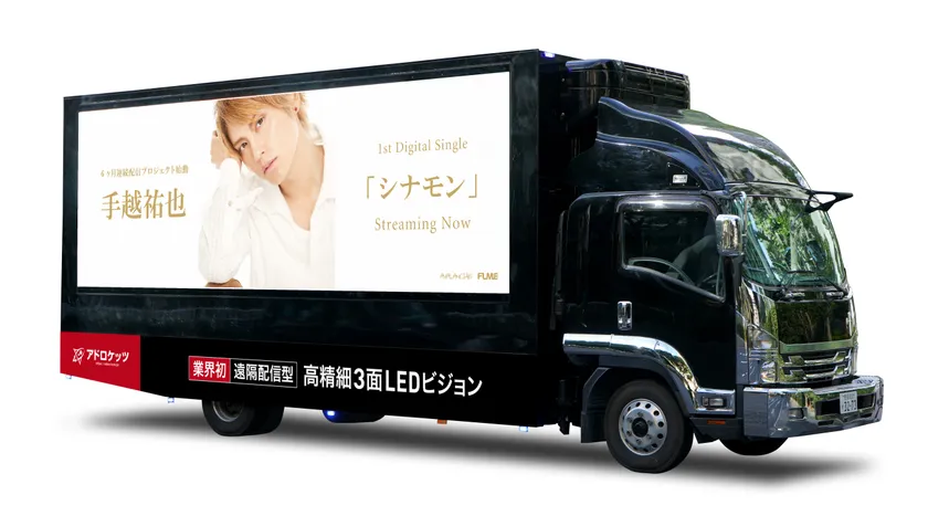 LEDビジョン販売、アドトラックの製作・運行を提供する、株式会社アドロケッツ(本社:千葉県野田市、代表取締役社長:築井大)が、広告業界初の「遠隔配信型 高精細3面LEDビジョントラック」の運行を開始しました。