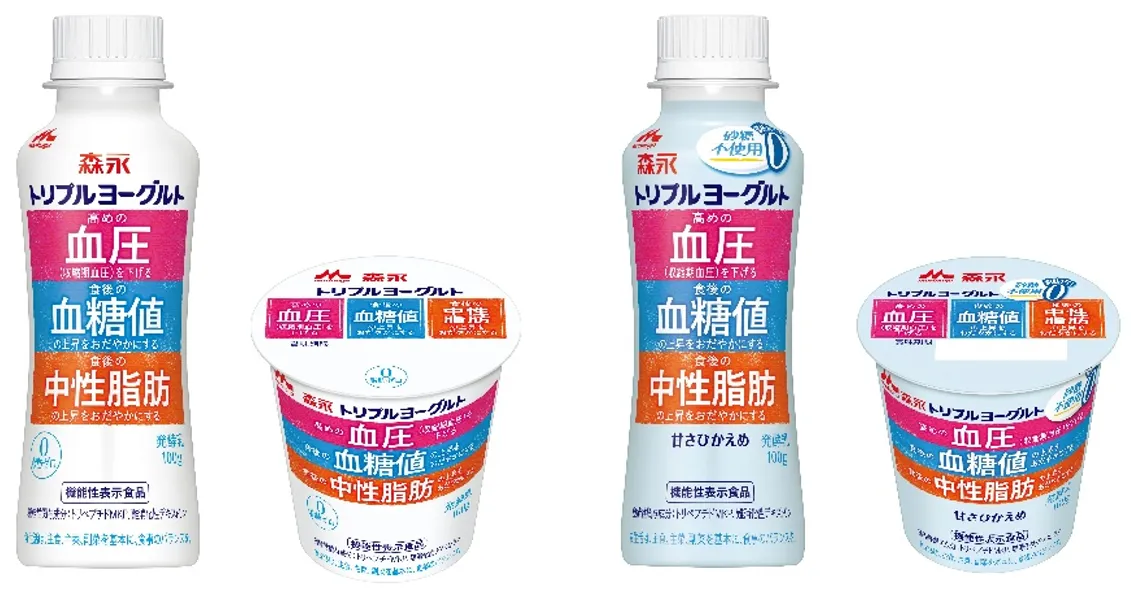 「トリプルヨーグルト」は、ヨーグルト業界初の血圧・血糖値・中性脂肪の3つの機能性を取得した森永乳業のヨーグルトです。