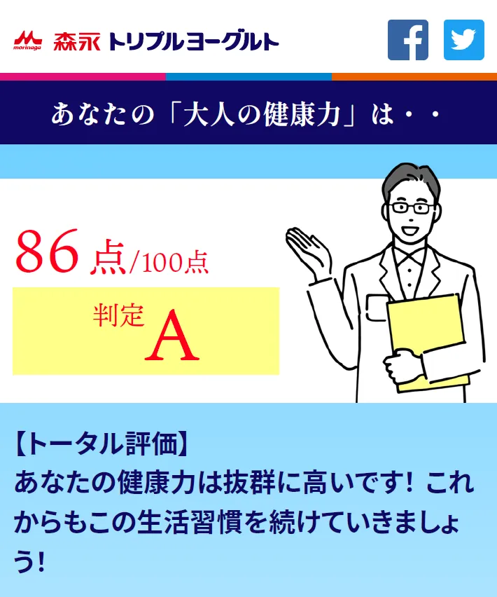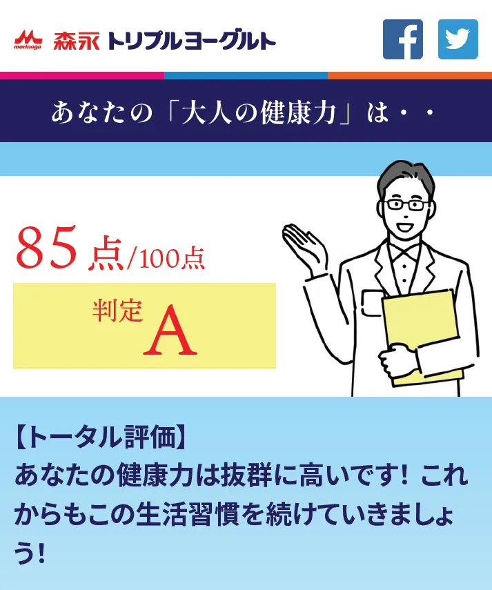 結果、A判定ではありましたが、まだまだ健康意識を高めていかないといけないということを、痛感しました。毎日の食生活にトリプルヨーグルトを取り入れて、飲み続けていきたいです。