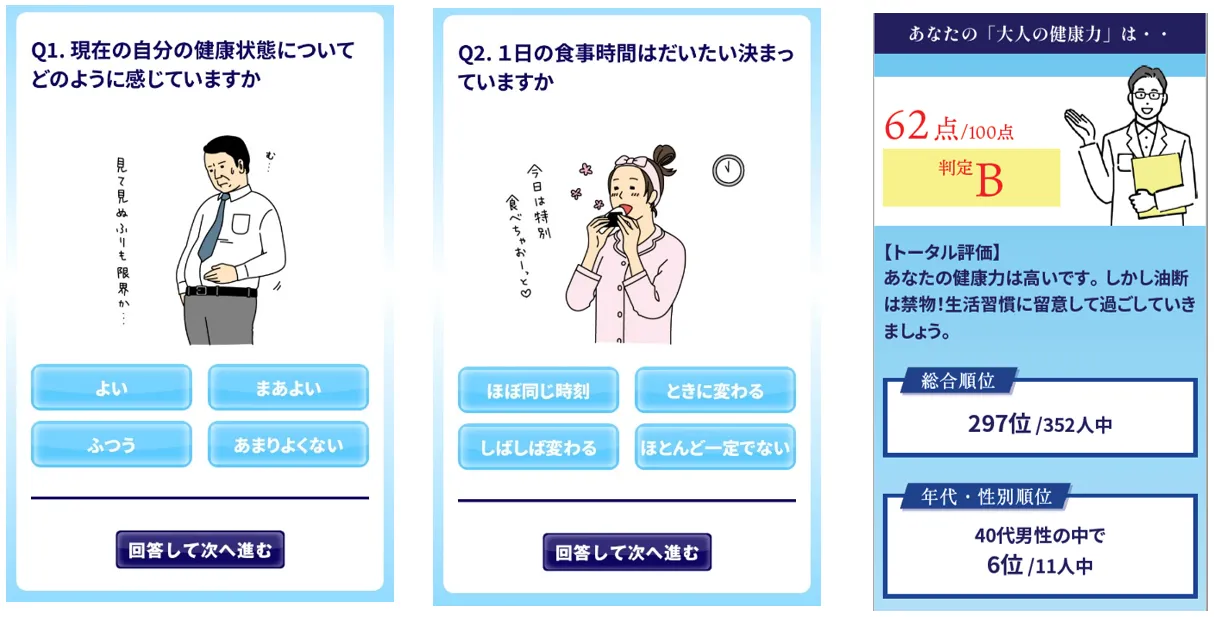 ※本リリースに記載の注意事項は一部です。詳しくは日本生活習慣病予防協会監修 「全国一斉大人の健康力診断」特設サイトをご覧ください。