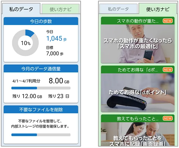 「インターネットがつながらない」「画面が回転する」など、スマートフォンのよくあるトラブルを解決する「スマホの健康診断」を搭載しているので、スマートフォン使用時の悩みをすぐに解決できます。
