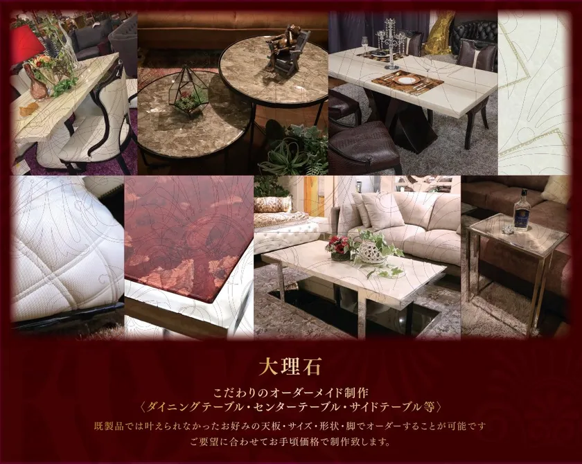 ・大理石 こだわりのオーダーメイド制作が可能(ダイニングテーブル・センターテーブル・サイドテーブル等)