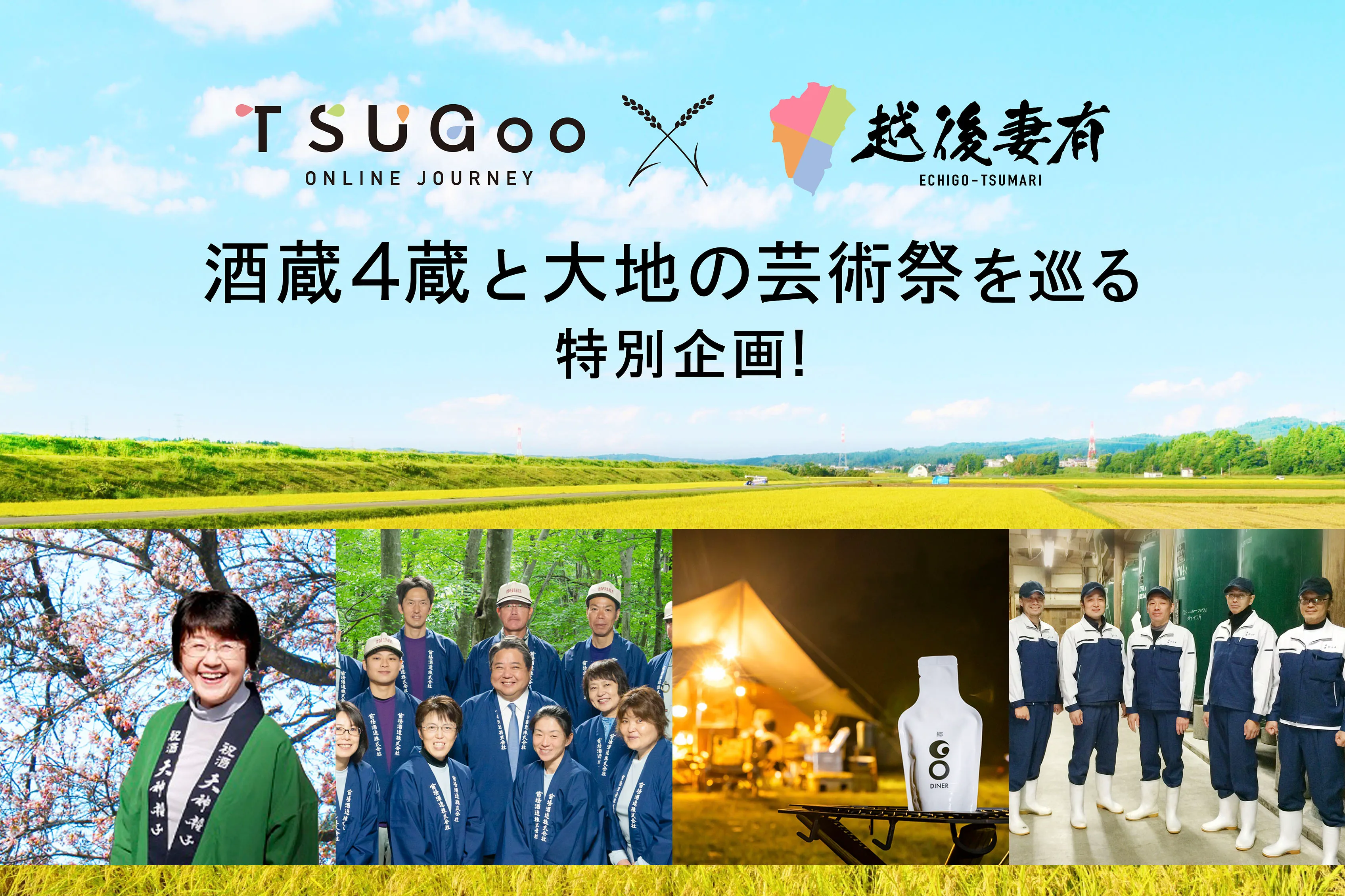 株式会社TSUGoo(ツグー)(代表:松田 幸生、本社:東京都台東区今戸2-28-9)は、酒蔵をオンラインで旅するサイト「TSUGoo」を2021年2月10日にオープンしました。「オンラインジャーニー」という形で酒蔵を訪問し、造り手たちのバックストーリーにふれながら、自宅でお酒を味わう。新しいお酒の楽しみ方を提案するサービスです。今回は越後妻有四酒蔵と大地の芸術祭を巡る特別企画を4週連続でお届けします。