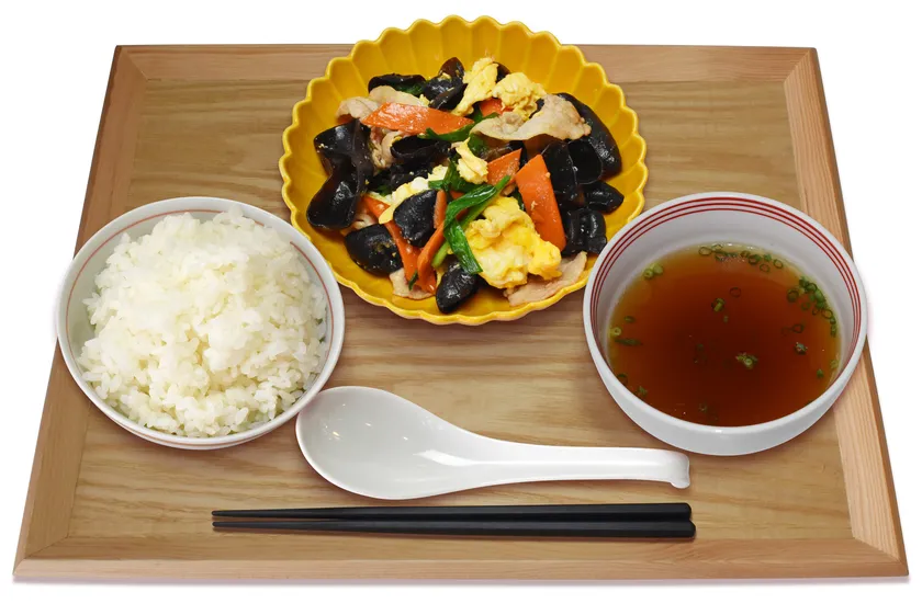 商品名 : (1)キクラゲ玉子炒め定食 628円(税込み690円)