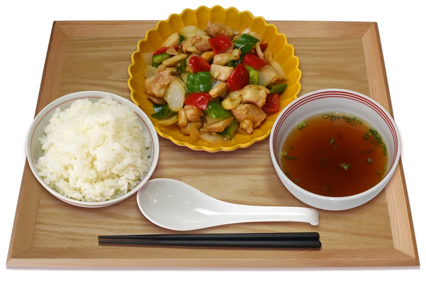 ・鶏肉と野菜のサイコロ炒め定食 682円(税込み750円)