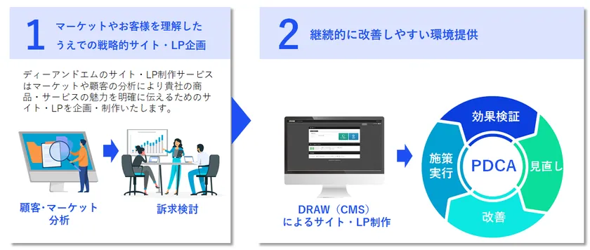 ディーアンドエム、調査・分析ノウハウを活かした、 独自のサイト・LP制作サービスおよび、CMS「DRAW」の提供を開始