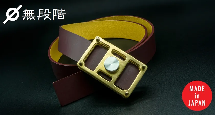 『無段階調整革ベルト』はベルトなのに穴がありません。ネジの回転によって止める新機能を採用しています(*特許出願済)。穴がないことで位置が固定されず、太っても痩せても関係なく、長く愛用できるサスティナブルな製品です。これは、3つの町工場の職人技術が集結して実現しました。革は日本皮革三大産地のひとつ東京墨田の革加工工場、バックルは馬具製造から設立した同じく墨田の鋳造工場、ネジは東京大田区で精密切削を行う旋盤工場が手掛けた、MADE in JAPANの商品です。