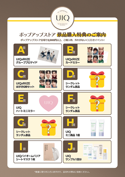 ポップアップ会場でUIQ商品を3,000円(税込)以上お買い上げ頂いたお客様限定で、くじ引きイベントに1回ご挑戦いただけます!