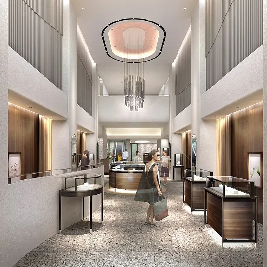 移転リニューアルを機に、ストアデザインのリモデルと店頭ディスプレイの刷新を行い、よりブランドの世界観を感じながら店内をご覧いただけるレイアウトに変更します。店舗前面はガラス張りにし1階・2階を吹き抜けの構造にすることで、開放感があり明るい空間を実現しました。地下1階、2階・3階にはプライベート空間を取り入れ、ゆったりと快適に指輪選びを行うことが可能です。また4階にはプロポーズサロンを設け、プロポーズをお考えのお客様にプロポーズアイテムやサービスのご提案をいたします。お客様おひとりおひとりのご要望を伺いながら最適な商品を提案する「パーソナルサポート」を通じて、一生の記念となるブライダルリングをゆっくりお選びいただきたいとの想いがこもったこだわりの店内となっています。