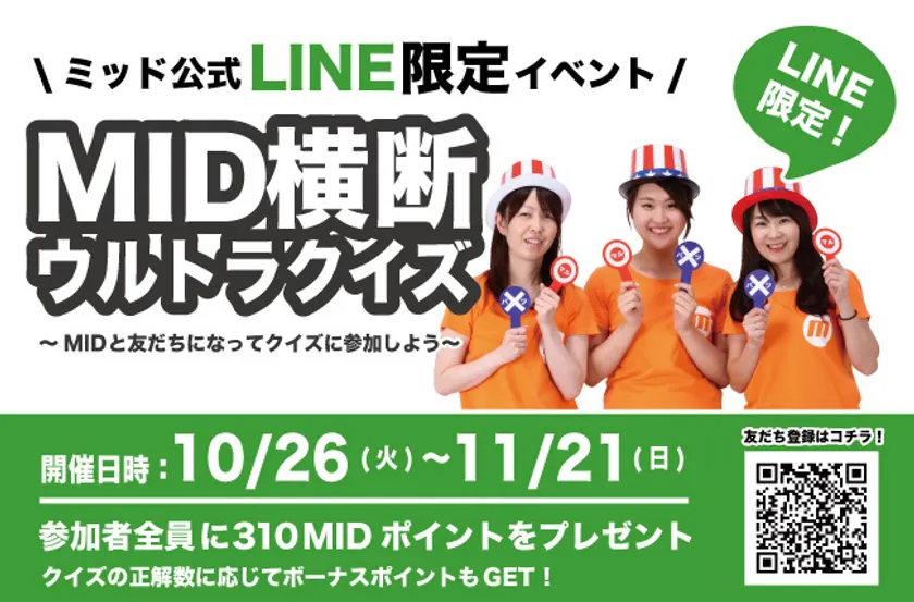 MID横断ウルトラクイズに参加してくださった方全員に「310 MIDポイント」をプレゼント!