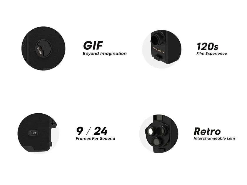 Fragment8最大の特徴は、GIFとMOVIE(最大120秒の動画撮影)の撮影が可能な点。ボタン一つで撮影モードが切り替わります。他、9FPS/24FPSの切り替えでテイストの異なる写真を撮影することもできます。