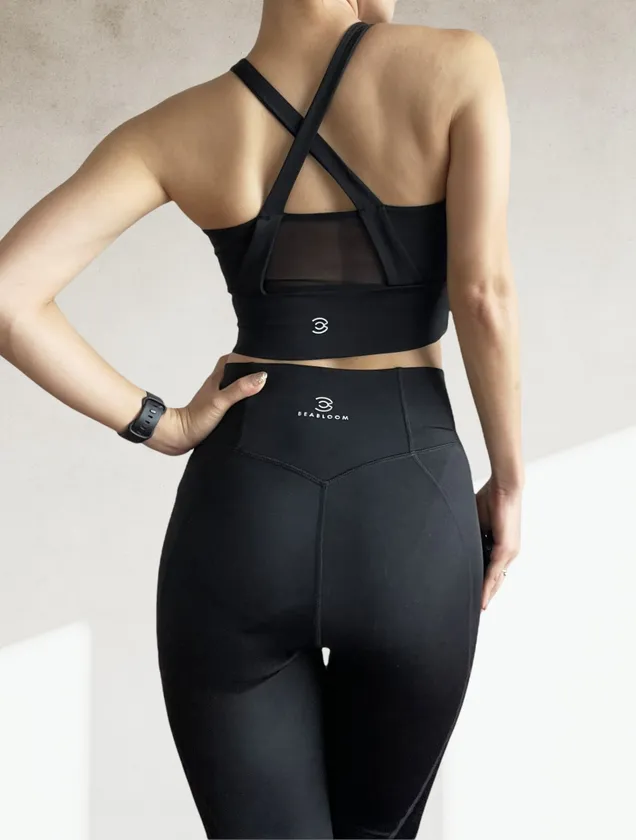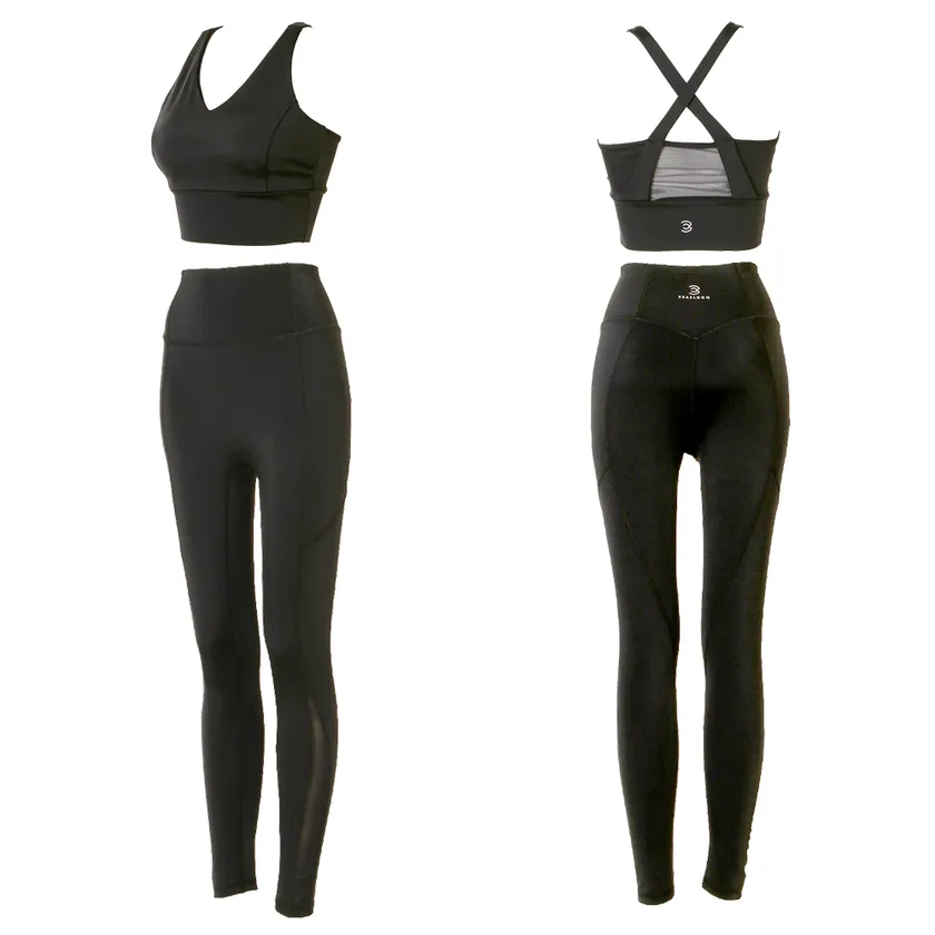 デザインに関しては、レギンスの裾とブラの背中にあるメッシュ切り替えのワンアクセントにより、ファッション性を高めつつも、シンプルで飽きのこないデザインに仕上げました。