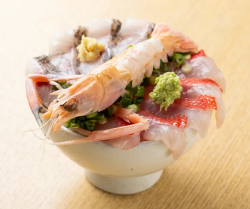しろむつ、アカザエビ、金目鯛など深海魚を使った深海魚が有名な沼津ならではの海鮮丼です。