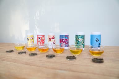 台湾茶の製造工程からインスピレーションを得たイラストレーター山下航氏が、パイナップル・ライチ烏龍茶のパッケージを担当。Three Leafs Teaのオーナーと茶園のイメージをモチーフにしたマンゴー・ピーチ烏龍茶は、アーティスト赤池完介氏によってデザインされました。台湾との友好を願い、南伊豆の人々をモチーフにした黄金柚子・巨峰葡萄烏龍茶は、イラストレーター伊集院一徹氏によるデザインです。台湾と日本の新たな交流のきっかけをつくりたいというデザイナー達の思いが込められた茶筒は、お茶を飲み終わっても素敵なインテリアになります。