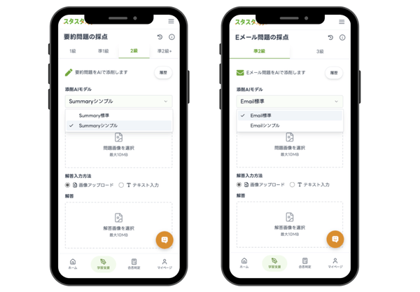 ユーザーは、採点画面のプルダウンメニューから、目的に応じて2つのAIモデルを選択できます。