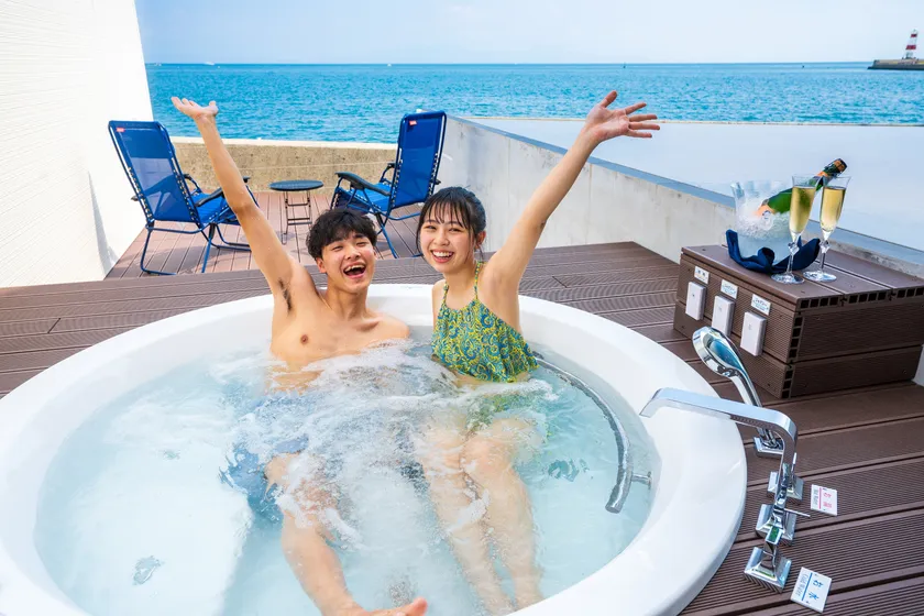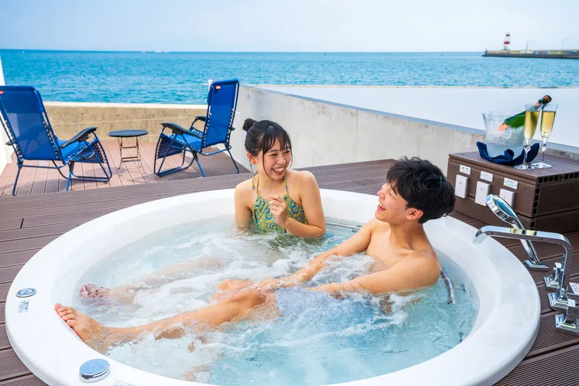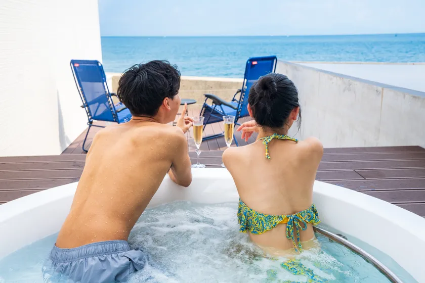 海が見える水着着用のジャグジーバス