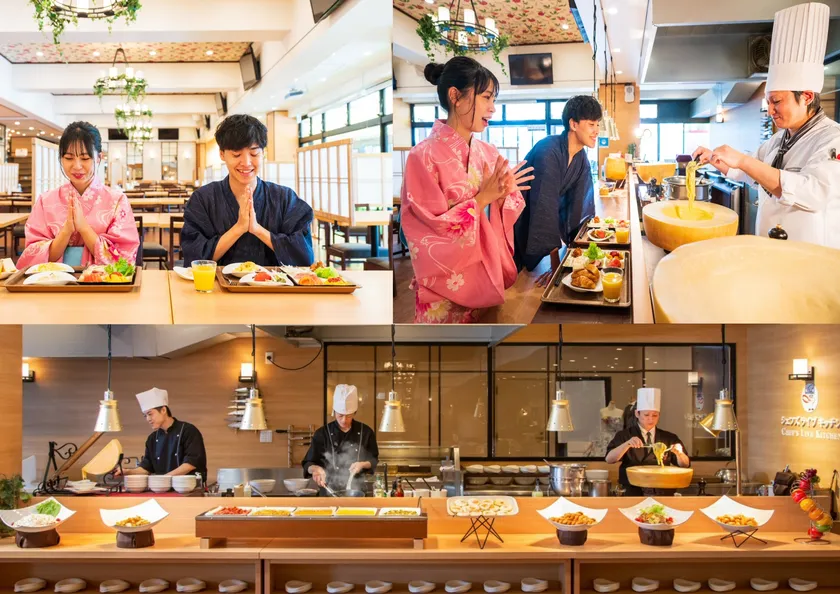 ご朝食は、ボリューム満点!和洋バイキングを海の見えるレストランにて快適に