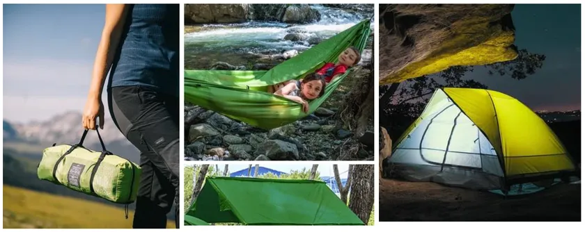 1台6役多機能テントの新作。テント、ハンモック、タープにもなるコンパクトセットで身軽にキャンプが実現。