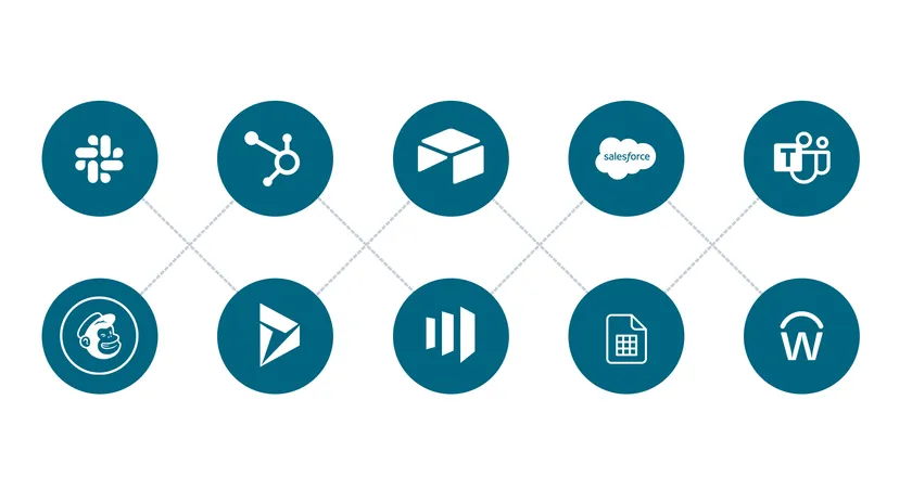 ・スマートな接続性とブロック - スマートブロックとして表示されるSalesforce、Slack、 MS Teamsなどの市場をリードするSaaSアプリケーションを素早く接続できるので、アプリケーションの低レベルAPIを技術的に理解する必要がなくなります。