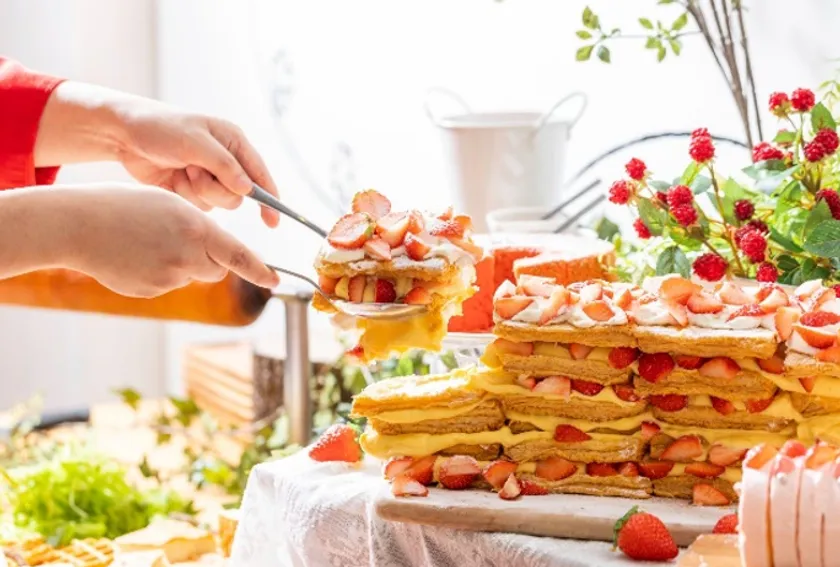 また、ご自宅でも当店のスイーツをお楽しみいただけるよう、ビュッフェで提供するメニューの一部はテイクアウトとしてもお取り扱いします。また、今後もお客様に安心してお食事していただけるよう、新型コロナウイルス感染拡大予防対策を徹底してまいります。