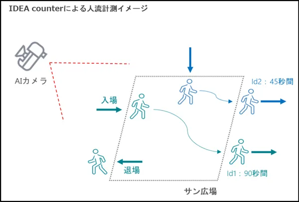 【方法】阪急サン広場にエッジAIカメラ「IDEA counter」を設置し、期間中の人流を解析
