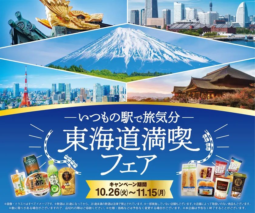 東海キヨスク株式会社では、2021年10月26日(火)より、東京~新大阪の店舗において、「―いつもの駅で旅気分―東海道満喫フェア」を開催いたします。同フェアは昨年も同時期に開催し、目玉企画として「伊勢名物 赤福餅」を東京で販売しご好評いただいた事から、今回も「喜八洲総本舗 みたらし団子」等の、ご当地でしか味わえない当日製造された一部の商品を、東海道新幹線等を活用して、他地域で販売するイベントを実施いたします。また、“地域グルメ”・“地域の味の違い”を楽しめるオリジナルおにぎりやサンドイッチを始めとした東海道の味を満喫できる商品を多数取り揃えております。お近くのキヨスクで“東海道”の魅力を存分に味わってください。