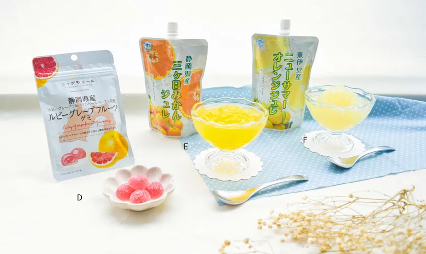 発見!東海道のおいしいもの(静岡県産ルビーグレープフルーツグミ、静岡県産三ケ日みかんジュレ、東伊豆産ニューサマーオレンジジュレ)