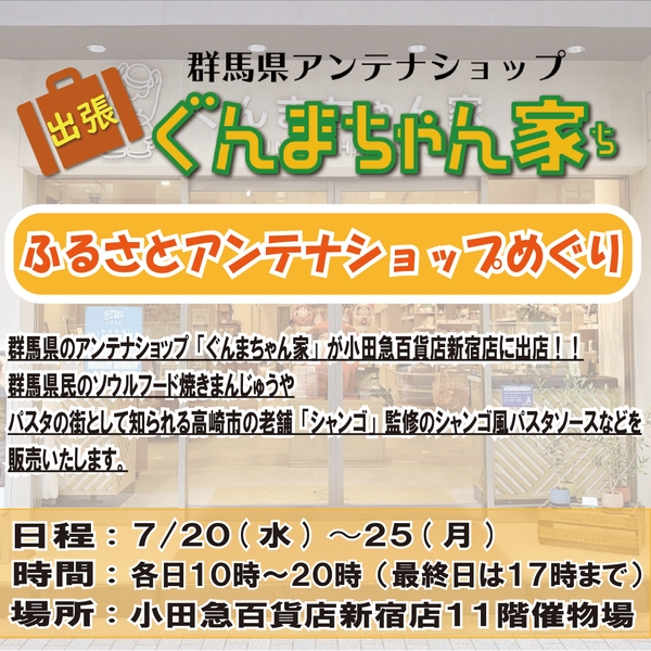小田急百貨店新宿店「ふるさとアンテナショップめぐり」にぐんまちゃん家が出店!7月20日(水)から25日(月)まで