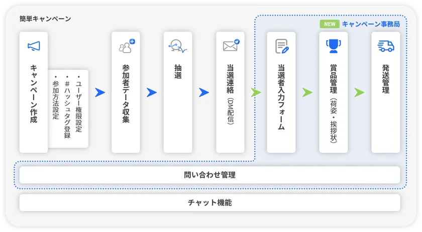 今回の事務局機能が搭載されたことで、キャンペーンとしても簡易なものだけではなく、キャンペーン運営に必要な強力な機能が揃ってまいりました。