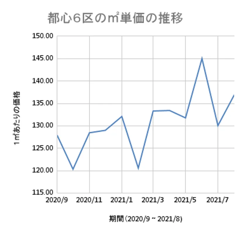 都心6区のm2単価の推移