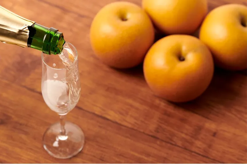 豊水梨の特徴として、ほのかな甘さとちょうど良い酸味があげられますが千葉のめぐ実「梨スパークリングワイン」では、そのままの豊水梨の味を楽しむことができます。