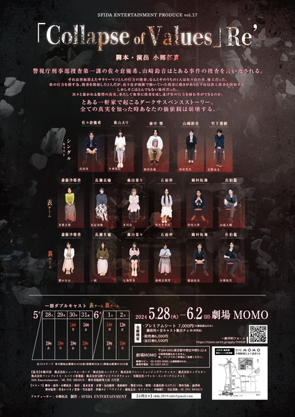 SFIDA ENTERTAINMENT(代表:小郷拓真)企画・主催、『Collapse Of Values』Re'が2024年5月28日(火)~6月2日(日)に劇場MOMO(東京都中野区中野3丁目22-8)にて上演されます。